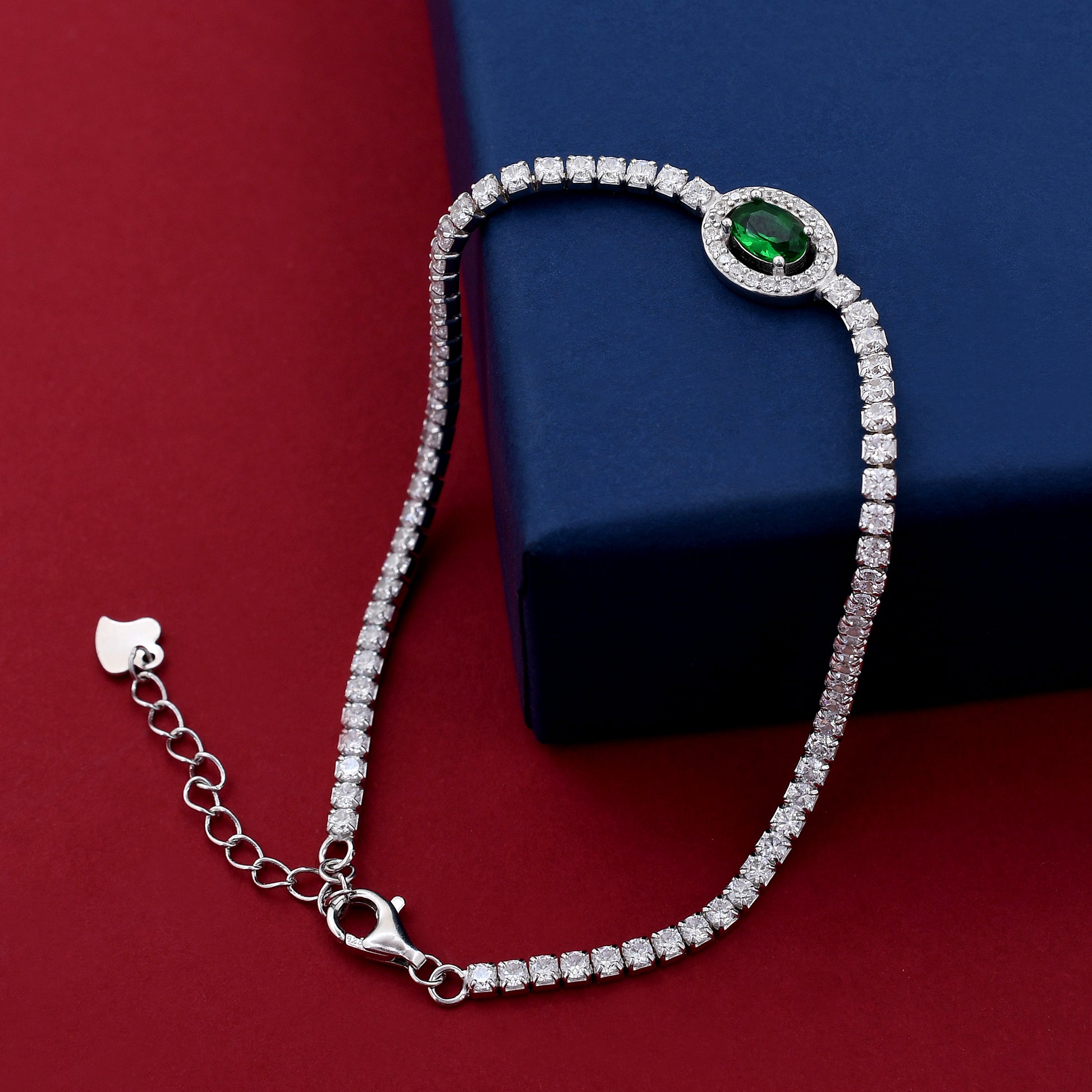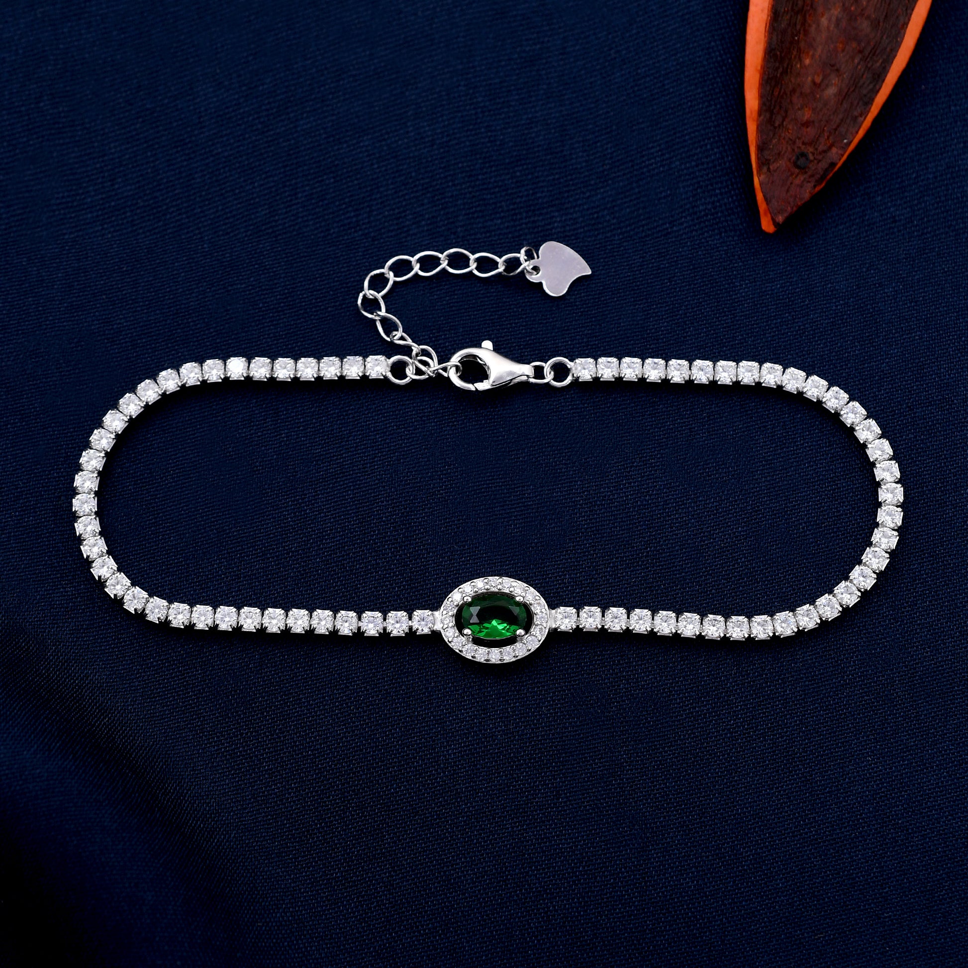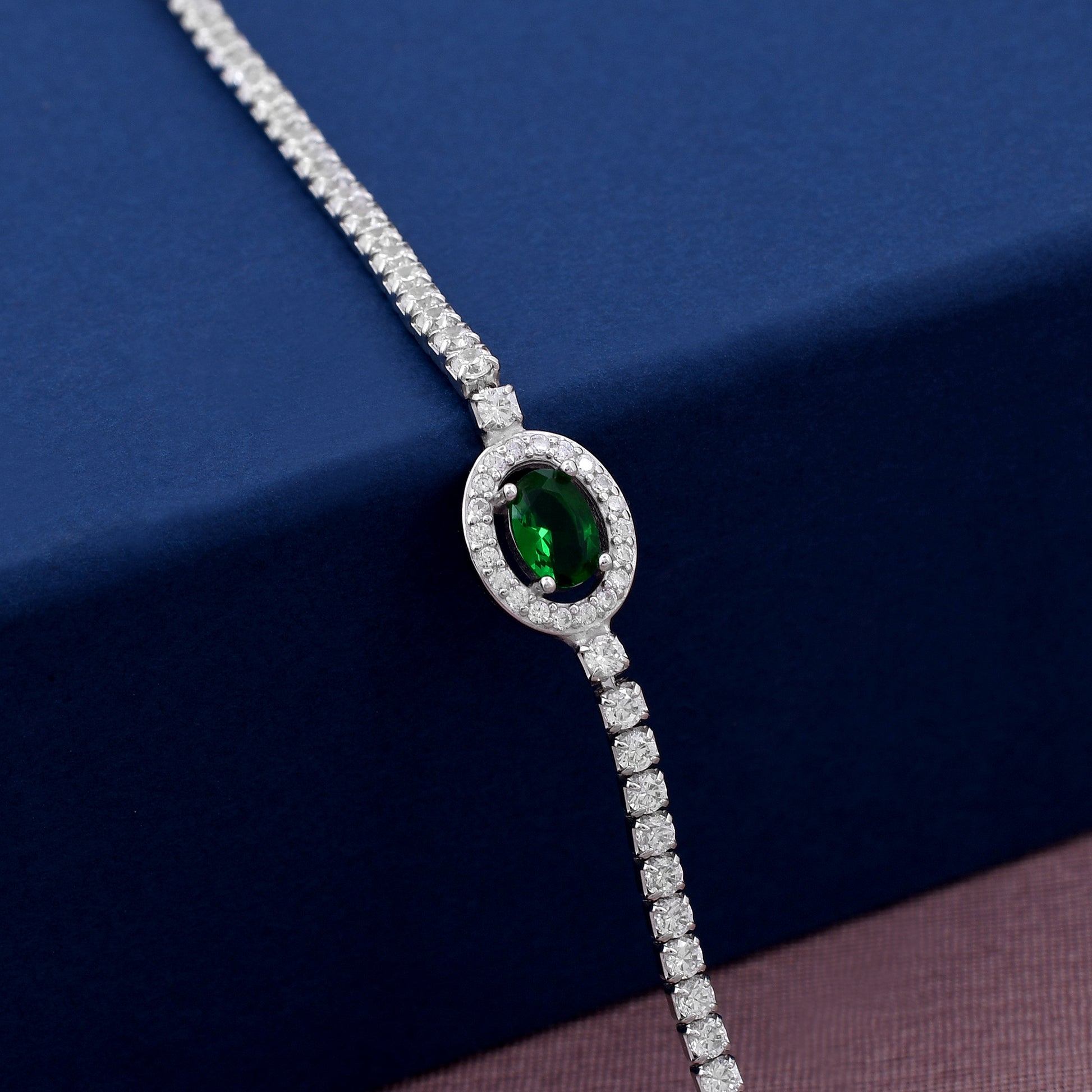 Emerald Diamond 925 Sterling Silver Bracelet