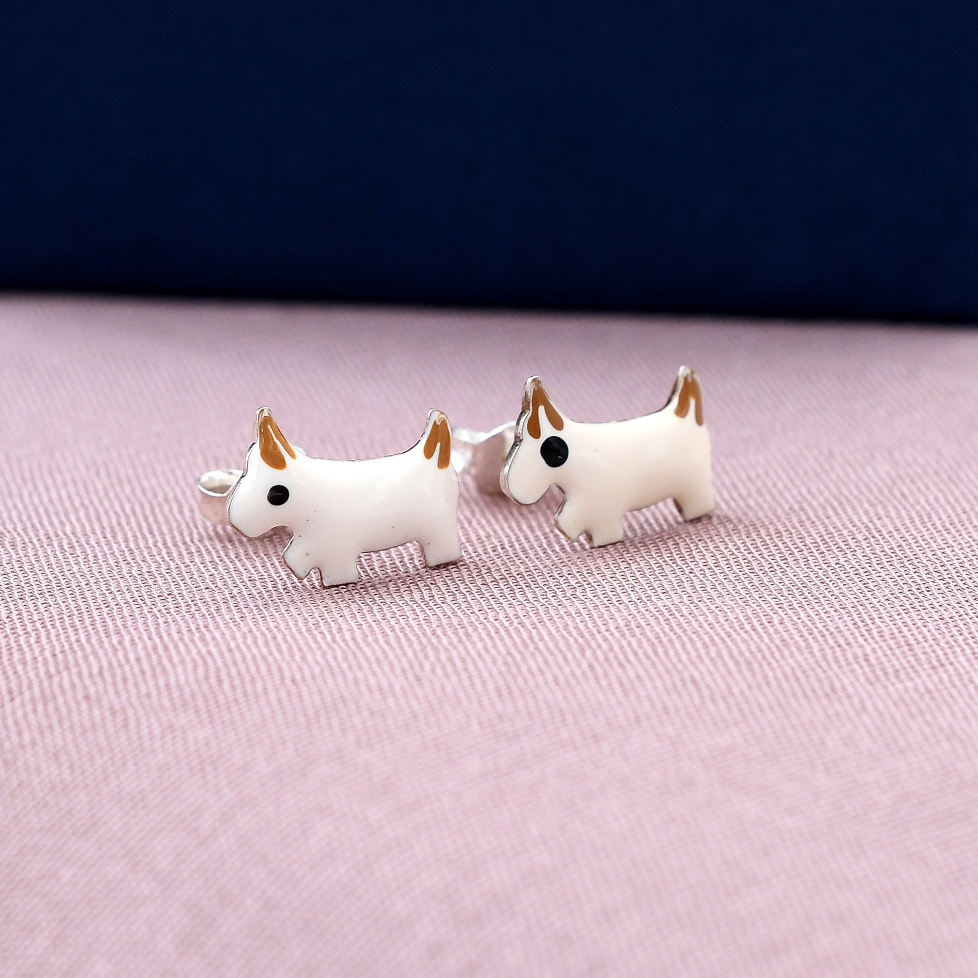 Cute Enamel White 925 Sterling Silver Studs