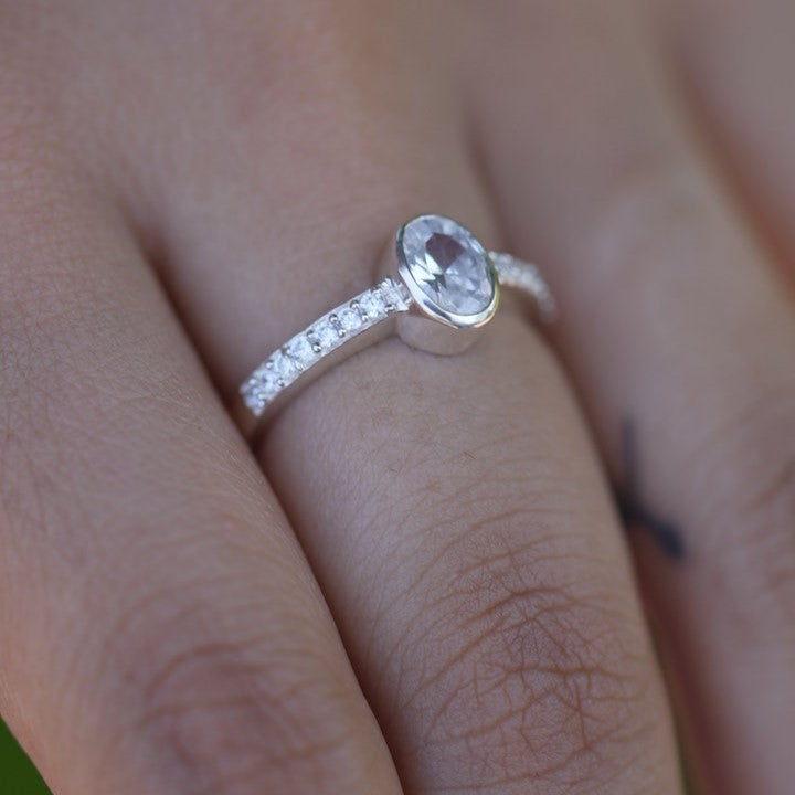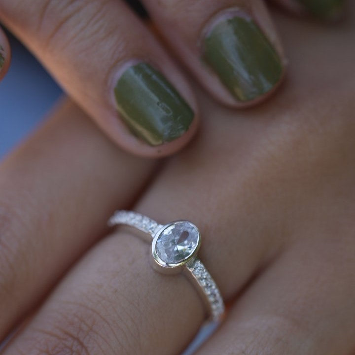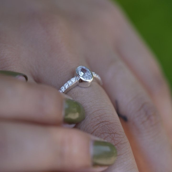 Oval Zircon Design 925 Sterling Silver Ring