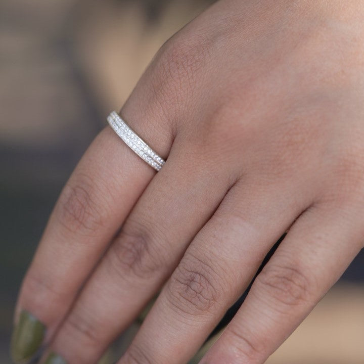 Steal the spotlight with Silvya's sparkling sterling silver rings, a testament to precision craftsmanship and timeless allure. Pair them with contemporary Indian ensembles like draped sarees or palazzo sets for a high-fashion look that exudes modernity and cultural elegance. Let the rings radiate confidence and captivate onlookers effortlessly.